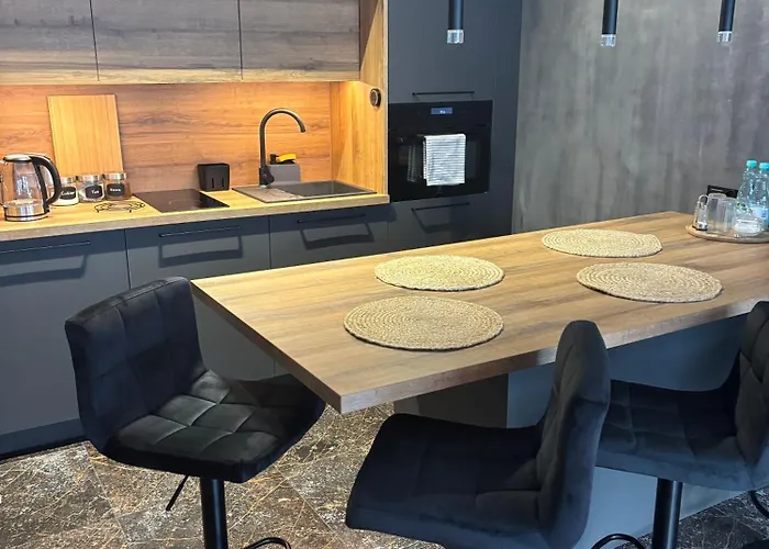 דירת דירות שצ'צ'ירק Gray Apartament מציעה מטבח וכמו כן גם חדרים עם ספה, מכשיר להכנת קפה/תה ואזור ישיבה. Marienkirche זה כ-2.2 ק"מ מהדירה, אשר בנוסף קרובה לSkocznia Skalite.
